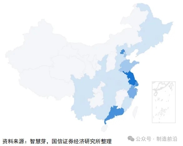 按专利统计分布来看,国内人形机器人领域专利主要集中在广东、北京、上海、江苏、浙江、山东、陕西、安徽、四川、辽宁等省市。