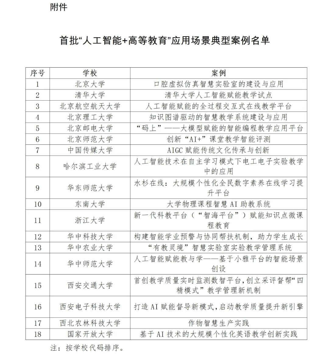 首批《“人工智能+高等教育”应用场景典型案例名单》如下: