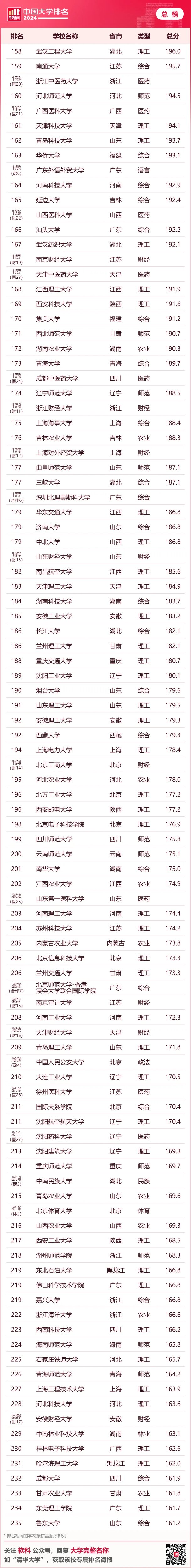 2024软科中国大学排名(主榜)2024软科中国医药类大学排名