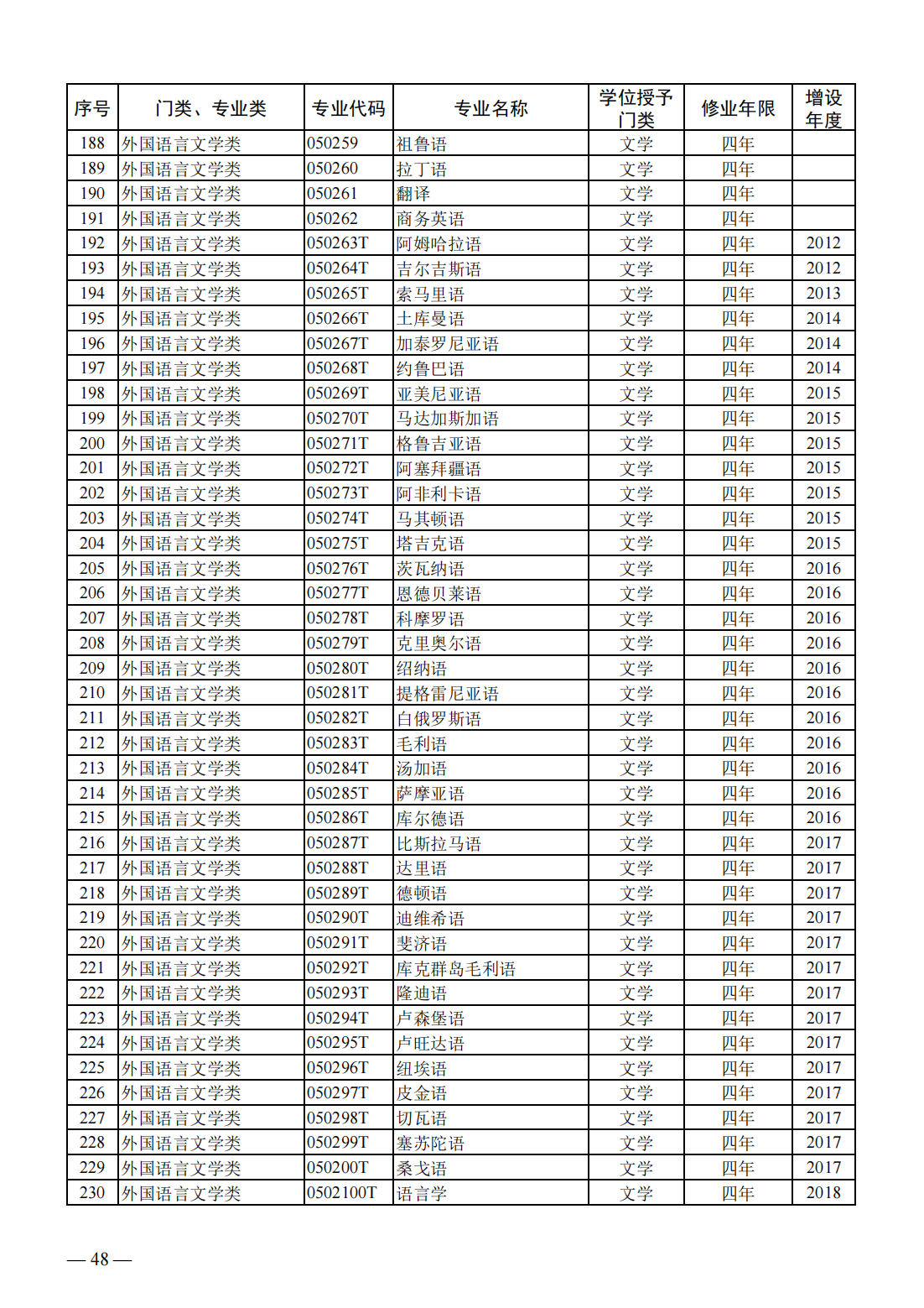 普通高等学校本科专业目录