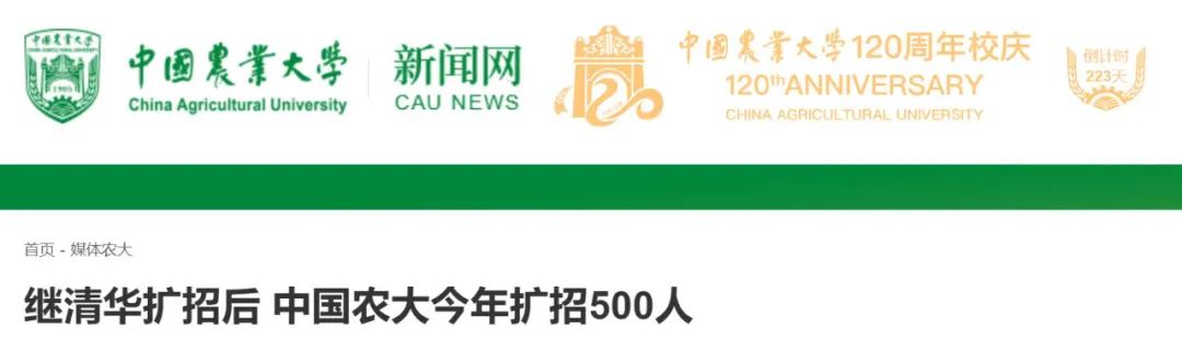 3月6日,中国农业大学宣布2025年将扩招本科生500人,重点面向国家急需的前沿技术和新兴业态,紧紧围绕粮食安全、生物智造、人工智能与装备制造、绿色能源与可持续发展等学科领域扩大招生规模,同时计划开设院士班、卓越工程师班等人才培养班型。