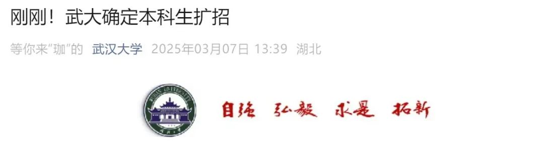 3月7日,武汉大学发布消息称,2025年将进一步扩招本科生,计划招生7300人。此次增加的招生名额将重点面向国家急需的前沿技术和新兴业态,着力培养人工智能与多学科交叉的复合型人才。